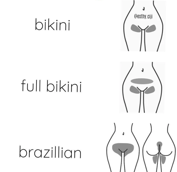 All hair removed on the Brazilian area from the front, back, and everything in between — smooth and clean PLUS the half stomach strip leading to the bikini area
